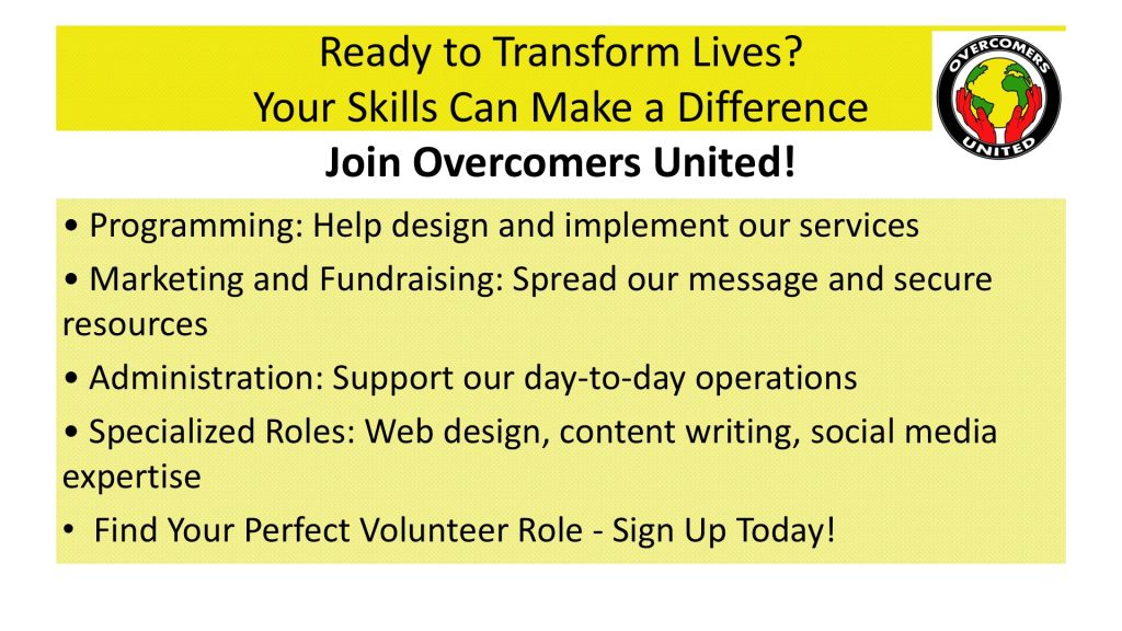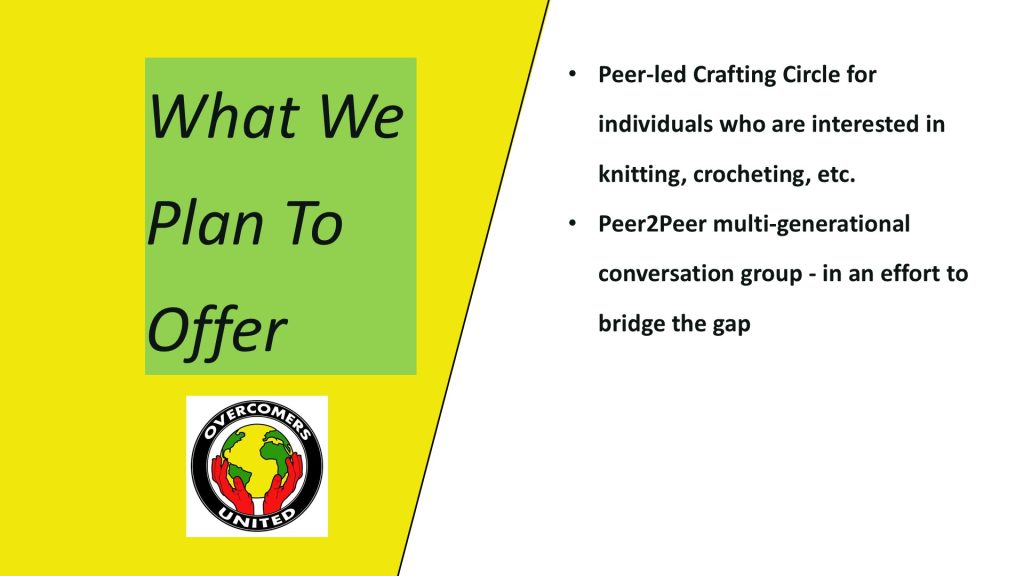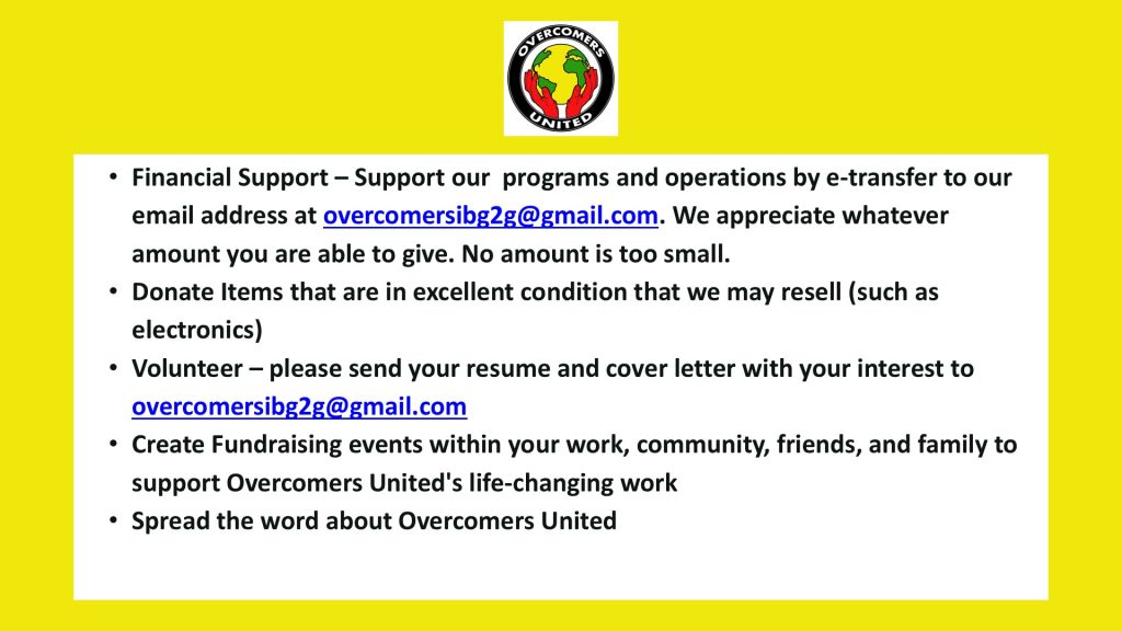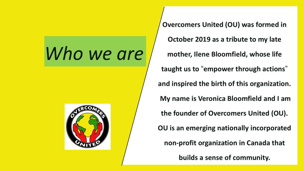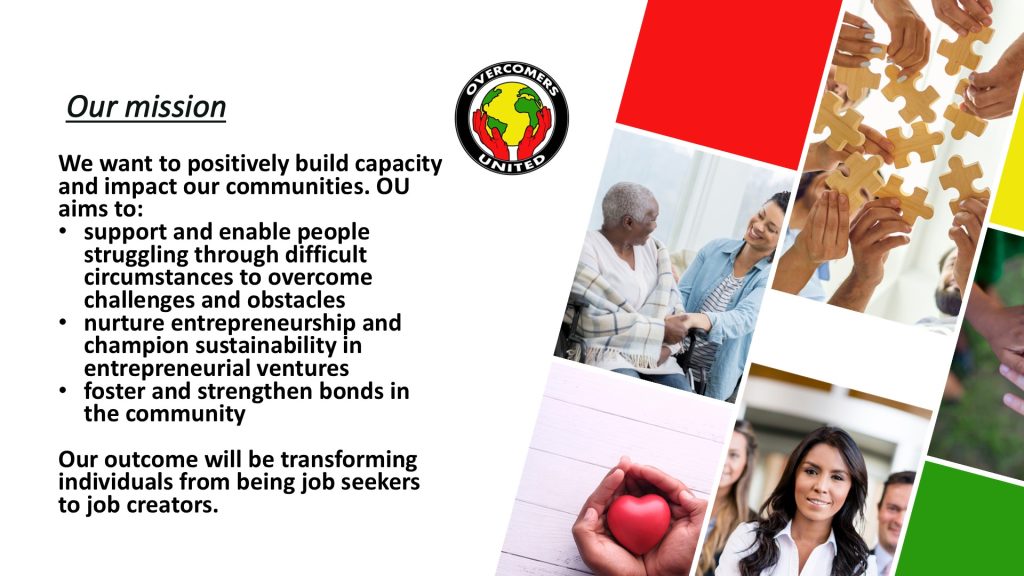 Overcomers United June 15, 2024November 23, 2024 Veronica BloomfieldOur Aimaccross-generationsaspirations-and-goalscollaborationcommunitiesCVITP-clinic-year-rounddevelop-talents-skillseconomically-deprived-achieveemerging-nationally-incorporated-organizationentrepreneurialentrepreneursenvironmentally-sustainablefinancial-support; programmingimpactintergenerationalmentee-mentormentorshipovercomer-challengesovercomer-obstaclespeople-helping-people-lead-to-successplan-to-offerpositively-build-communitiesresilienceresourcessense-of-communityspeakers-seriesstrengthen-bondsstruggling-through-difficult-circumstancessustainable-livelihoodvolunteeringvolunteersweekly-programmingwhat-we-offer Share this: Print (Opens in new window) Print Email a link to a friend (Opens in new window) Email Tweet Share on Reddit (Opens in new window) Reddit Share on Tumblr Share on Telegram (Opens in new window) Telegram Like this:Like Loading... Related