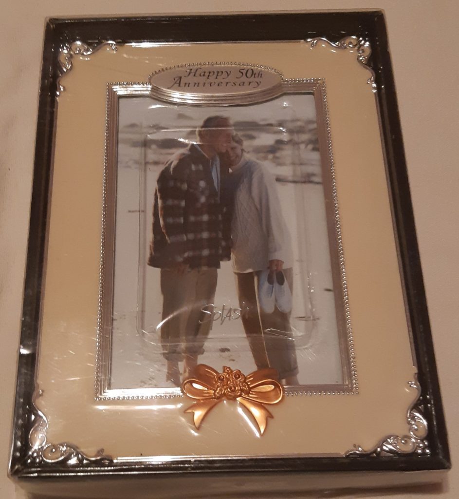 Picture Frame – 50th Anniversary – Splash – Silver plated frame with copper tone bow – 8″ x 6″ 1.5″ Used like new